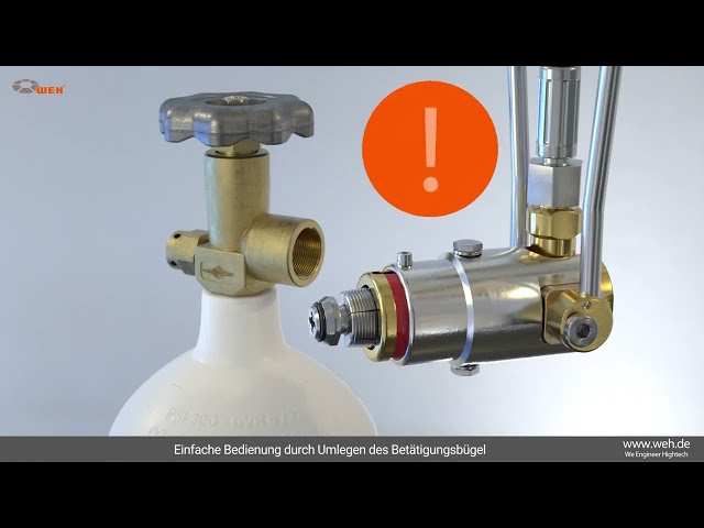 Dank des innovativen WEH® Spannzangensystem wird die sichere und druckdichte Verbindung in Sekundenschnelle hergestellt. Die spreizbaren Gewindesegmente spannen sich im Gewinde des Flaschenventils fest und gleichzeitig wird das Ventil abgedichtet.