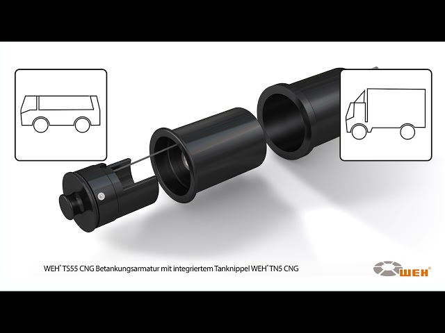 Der integrierte Tanknippel WEH® TN5 CNG sorgt für kurze Füllzeiten und hohen Durchfluss. Er ermöglicht ein nahezu geräuschloses Tanken.