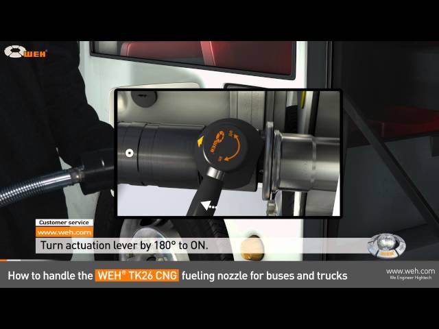Fueling nozzle for CNG fast filling of buses and trucks at self-service fueling stations to be used with WEH® Receptacles acc. to NGV1 standard and ISO 14469.